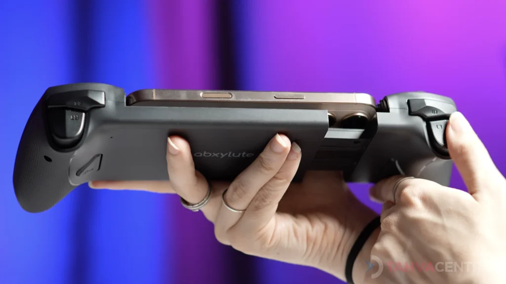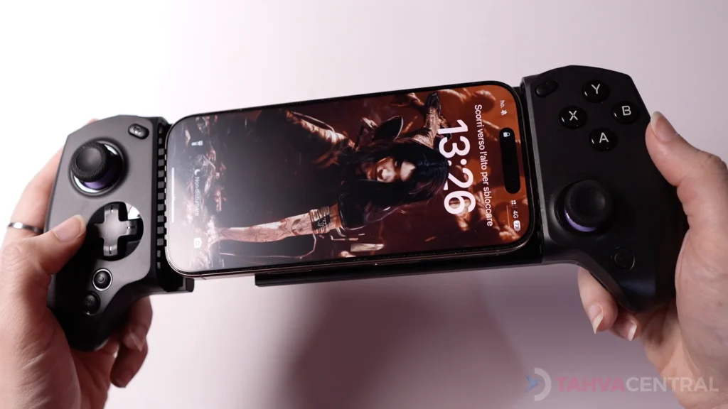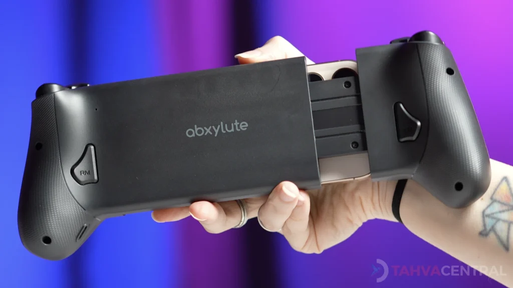 Il primo elemento che ho apprezzato particolarmente dell’Abxylute S8 è la sua adattabilità. Parlo sia di quella consentita dalla connessione wireless, sia di quella concessa dalla sua struttura telescopica: il controller si allunga e permette, al suo centro, di sistemare dispositivi anche belli ingombranti.