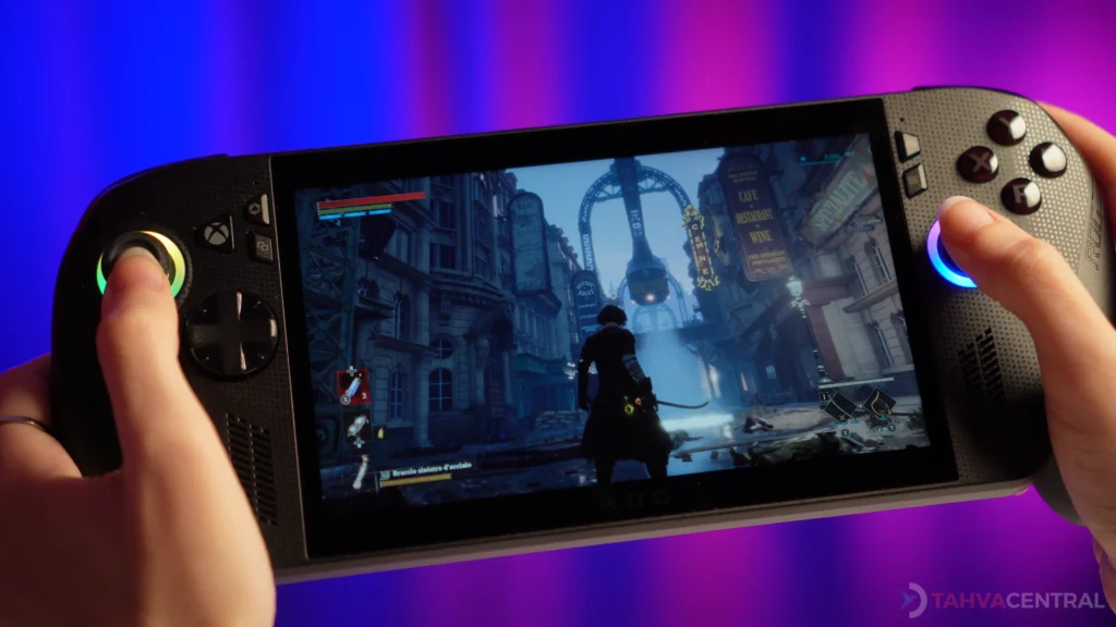 Lo abbiamo detto in tutte le lingue del mondo pre-lancio e l’esperienza lo conferma: sì, il display è piccolo. Capiamoci: è iper-nitido, il full HD è un piacere, i 120 Hz anche, i colori sono davvero vivaci per essere un IPS e fa tutto quello che deve fare per regalare immagini di gioco definite e godibili. Solo che è piccolo, tutto qua: interfacce come quelle di Clair Obscur, per capirci, sono microscopiche – lo erano perfino sugli 8” di MSI Claw 8, ma qui ancora di più.